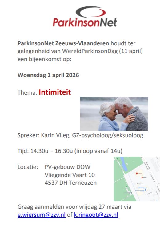 Ter gelegenheid van Wereld Parkinson Dag organiseert ParkinsonNet Zeeuws-Vlaanderen een bijeenkomst over het thema: “Intimiteit”.