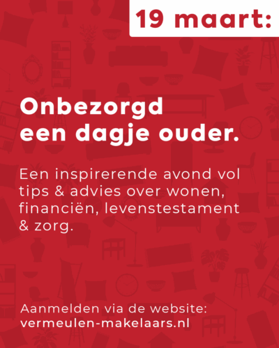 Tijdens dit avondvullend programma op donderdag 19 maart komen deze verschillende thema’s aan bod. Als u deze avond bezoekt, krijgt u duidelijke handvatten aangeboden, zodat u nu of in de toekomst duidelijke keuzes kunt maken. Natuurlijk is er ook gelegenheid voor het stellen van vragen en in gesprek te gaan met de experts. De avond wordt afgesloten met een hapje en een drankje.